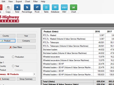 Reports and data coverage of 20 types of equipment in the compact, earthmoving, lifting & materials handling, road building and agricultural categories.