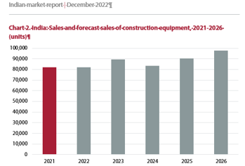 Off-Highway Research has revised its 2022 forecast for India downwards. The previously anticipated 4 per cent rise in sales will not now materialise, with volumes remaining on a par with 2021 levels. Sales forecasts for most of the high volume product types have been revised downwards, with only the outlook for the enduringly popular backhoe loader remaining unchanged. In addition, projections for skid steer loaders and telescopic handlers – two niche products in India – have been revised slightly upwards.